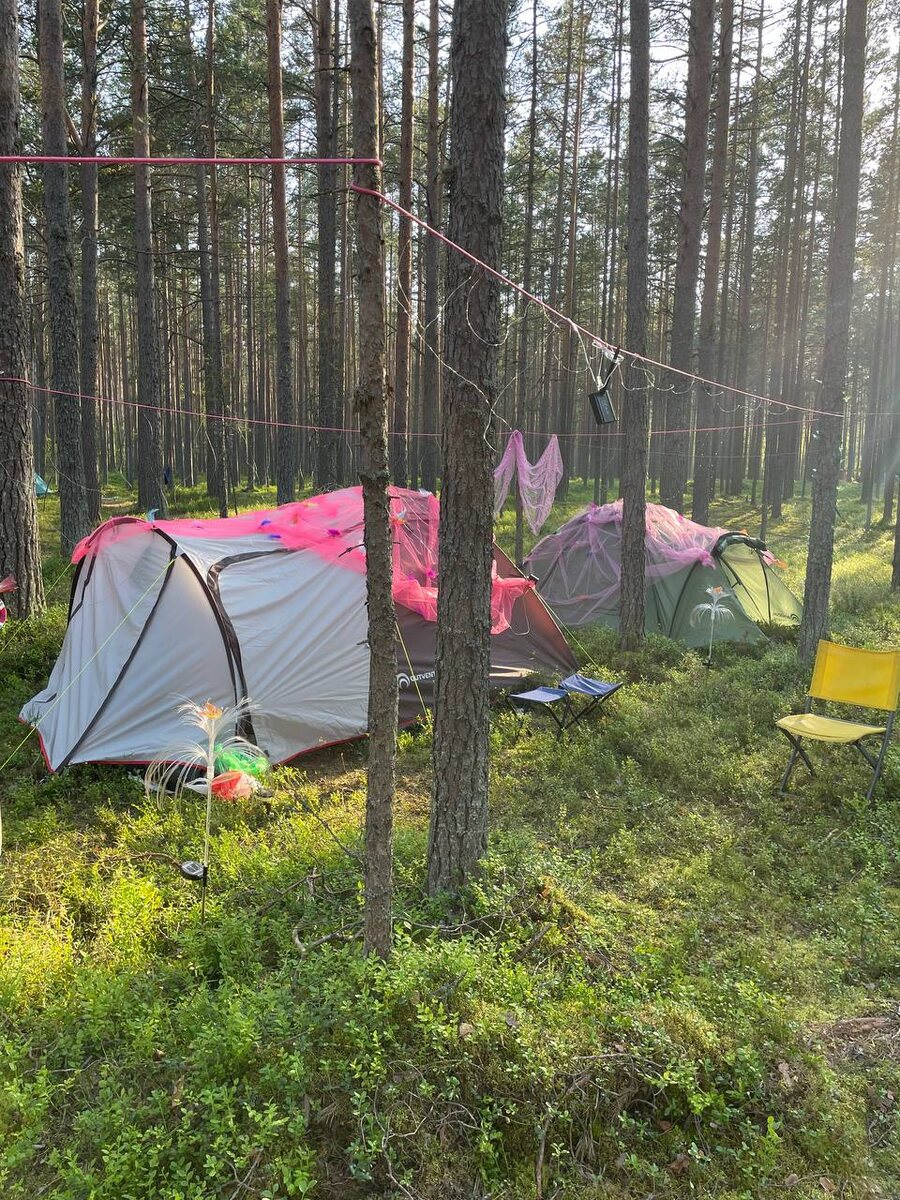 Пришлось переехать, так как местные волонтеры почему-то решили складывать мешки с фестивальным мусором около нашего лагеря 🤬 сделала новый дизайн интерьера 🙂
