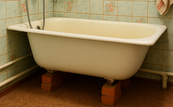 Вроде бы — мелочь, а на деле целый пласт бытовой культуры. Почему советские люди так массово устанавливали ванны на кирпичи, и что за этим стояло? Многие помнят: заходишь в старую советскую ванную комнату — а под чугунной ванной красуются обыкновенные кирпичи. Без кафеля, без ножек, просто кирпичи, иногда даже прихваченные цементом. Сегодня это выглядит грубо и странно. А в прошлом — было нормой. Причём нормой, за которой скрывались вполне понятные, практичные и даже разумные мотивы. Не было ничего лишнего — всё на деле, всё по уму. Во-первых, стоит вспомнить, какие ванны стояли в квартирах. Чугунные. Тяжёлые настолько, что одному человеку её не поднять. Установка такой ванны требовала усилий минимум двух-трёх человек. Особенно при заселении в новострой или после капремонта — её несли по лестнице, на руках, через узкие дверные проёмы. И если ножки были плохо закреплены или со временем расшатались — ванна начинала "играть", покачиваться. Иногда трещал кафель, бывало, что вся конструкция