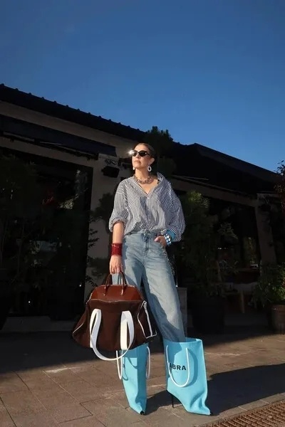 Аномальная жара и модные эксперименты: Ксения Собчак в сапогах-пакетах за 168 тысяч рублей Ксения Собчак, известная телеведущая и амбассадор модных трендов, не перестает удивлять публику своими смелыми образами. В условиях аномальной жары в Москве, когда температура достигает 35 градусов, Собчак решила продемонстрировать свою новую покупку — голубые кожаные сапоги, которые на первый взгляд напоминают оригинальный шопер. Этот экстравагантный наряд вызвал широкий резонанс в социальных сетях. Ксения оправдала свой выбор, заявив: «Для модного человека это не повод шлепанцев. Модный человек в сапогах, так как они только что появились, а осенью в них все уже походят». Стоимость этой обуви составляет 168 тысяч рублей, и она доступна в нескольких цветах — голубом, бордовом и черном. Интересно, что ботильоны имеют ручки с обеих сторон, что позволяет использовать их как сумку, что ещё больше подчеркивает необычность дизайна. Образ телеведущей был дополнен крупными серьгами от бренда CELINE,