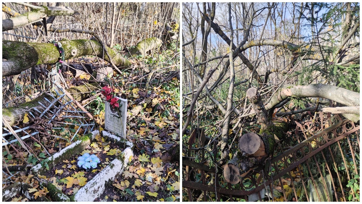 Всехсвятское кладбище в центре Тулы — мемориальный комплекс, где с 1772 года хоронили как простых горожан, так и известных земляков. Среди них купец Белобородов, конструктор Токарев, основатель Центрального парка культуры и отдыха Петр Петрович Белоусов. Туда водят экскурсии, устраивают субботники, рассказывают о прошлом города. Однако стоит отойти чуть дальше от могилы Белоусова — и открывается совсем другая картина. Поваленные деревья, мусор, заросли. Пройти невозможно. В редакцию "Тульской прессы" обратилась Лариса Гусева. Уже три года навещать могилы родственников для пенсионерки — то еще приключение. "Мы ходим с сестрой туда каждый год, но раньше всегда было можно пройти. Там у нас пять могил: дядя, тетя... Они оба были в отрядах Щорса, и в молодости погибли. Еще мои дедушка, бабушка и сестра. В позапрошлом году мы пришли — здесь был какой-то ужас: деревья загородку нам погнули, потом табличку поломали. А убирать — никто не убирает. Предел моему терпению кончился", — говорит Ларис