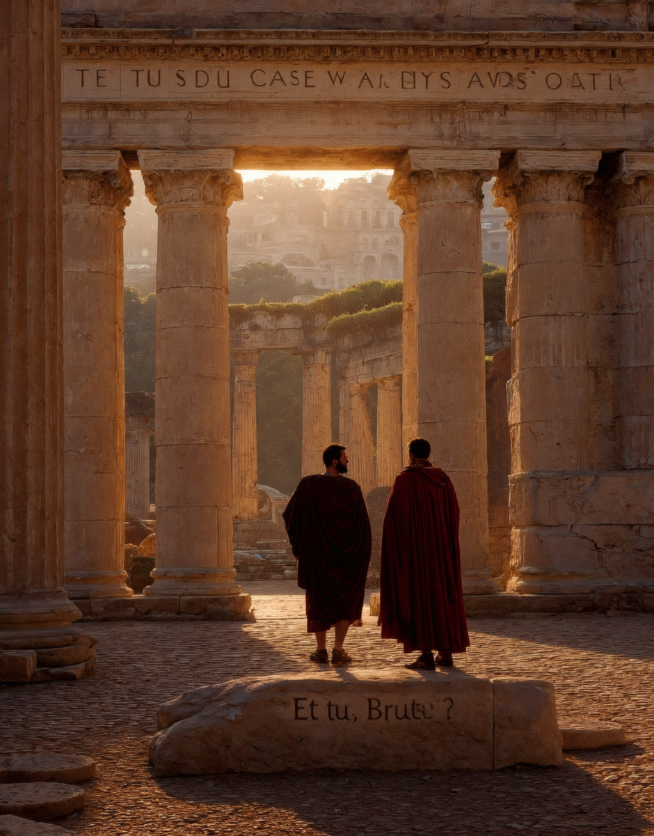 Ты ранен. Ожидаешь объяснений. Хочешь понять, как человек, с которым ты ел, делил мечты — теперь молчит, когда ты тонешь. Или хуже — стал причиной твоего падения. Память эпох видела многое... Юлий Цезарь был не просто правителем. Он был отцом для многих, другом, вдохновением. И когда нож вошёл в его спину — он не удивился. Он всмотрелся в глаза того, кто держал рукоять. "И ты, Брут?" — эта фраза вошла в вечность не потому, что это был шок.