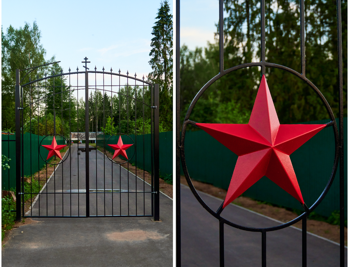 Привет. Одним летним вечером я взяла свой велосипед и отправилась в путь. Сначала хотела просто сделать много красивых фотографий, которые передают эстетику деревенской жизни, чем, впрочем, и успешно занималась. Посмотреть их можно вот тут, в моём Telegram-блоге. А затем внезапно решила съездить на мемориал. Мама давно мне говорила его посетить: там сделали ремонт, и он очень изменился. Первое, что бросилось в глаза, — красивые кованые ворота с ещё новой и не облезшей краской. Раньше там был невысокий заборчик и калиточка, всё потрескавшееся от времени. Сейчас же ворота сделали очень высокими — сразу видно, что это официальный вход. Выглядит очень красиво и современно. Большим нововведением стал Вечный огонь. Раньше его зажигали только на 9 Мая, сейчас провели газ и подключили на постоянной основе. Приятно, что администрация посёлка вкладывается в его развитие, особенно в такую важную часть. Братское кладбище у нас находилось в лесу. Идешь по узенькой, протоптанной лесной тропинке, а