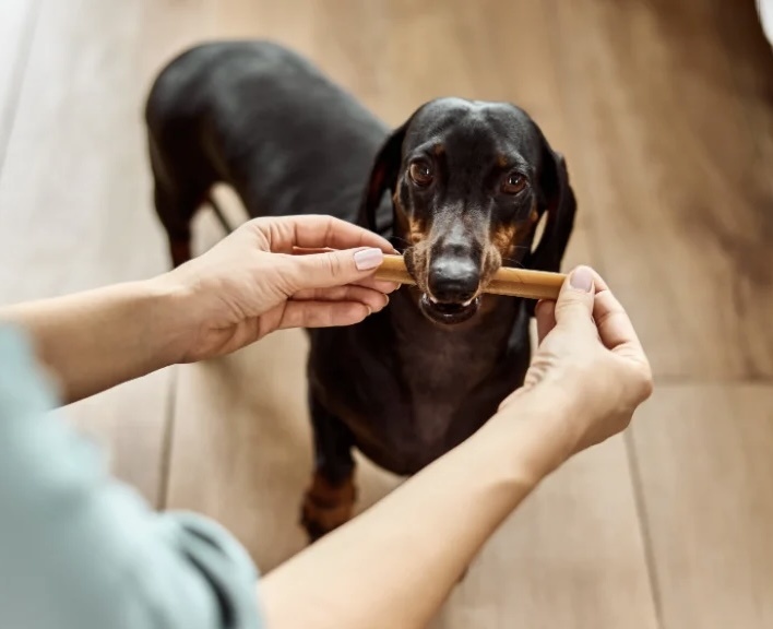 Используйте лакомства для поощрения при дрессировке, в качестве редкого угощения или для ухода за зубами (специальные палочки).