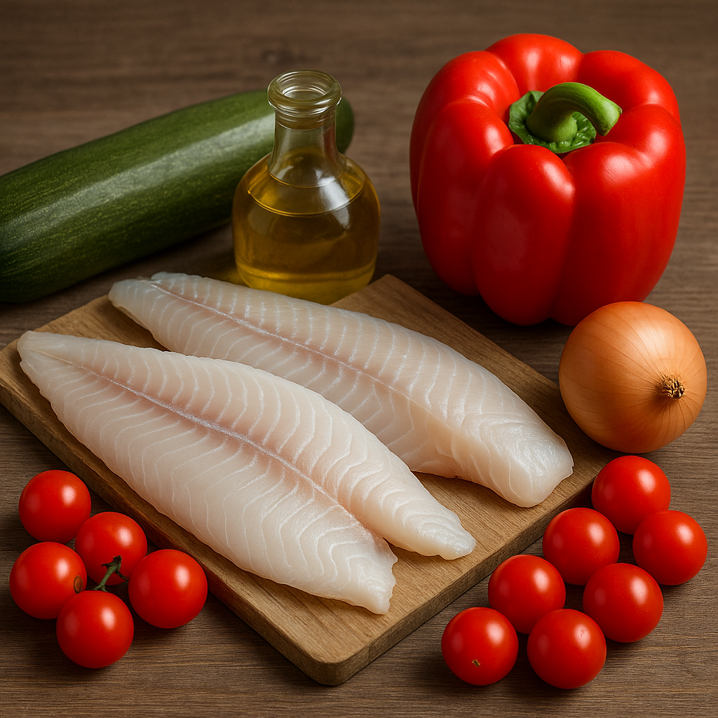 Дорогие друзья, предлагаю вам приготовить вкусный и простой летний ужин с рыбой - запечённое филе с овощами в духовке. Это лёгкое в приготовлении блюдо, насыщенное полезными жирами и витаминами, готовится всего за 25 –30 минут.