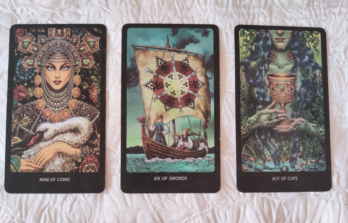 ✨🌿 Карта дня: Девятка Пентаклей, Шестёрка Мечей, Туз Кубков