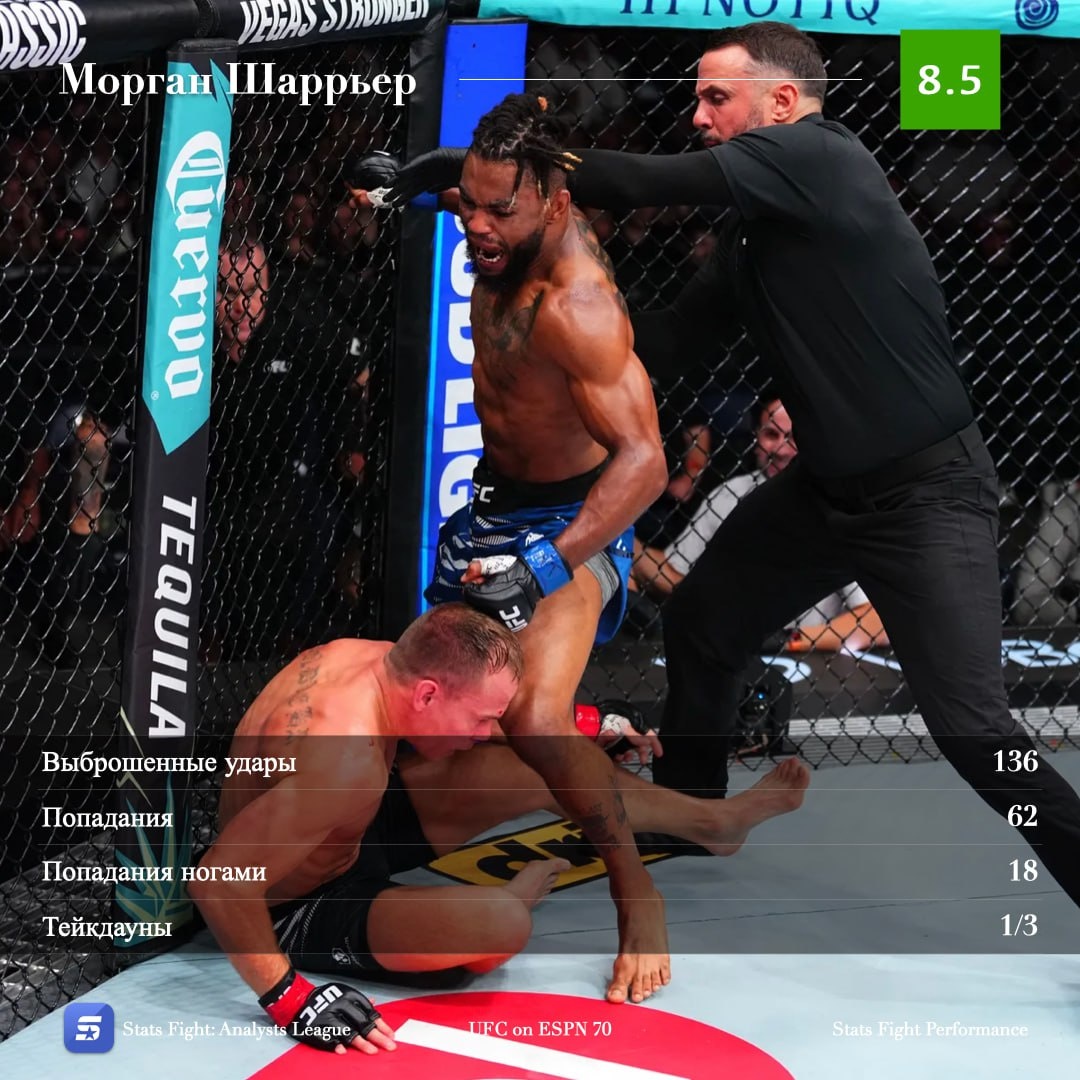 ✅ Морган Шаррьер показал самое техническое выступление на #UFCNashville на основе алгоритма Stats Fight Performance, набрав оценку 8,5