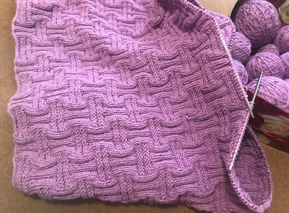 Вязание носков - занятие хотя и кропотливое, но результат не заставляет себя долго ждать. Чего нельзя сказать о плечевых изделиях или крупных интерьерных вещах. 😊 Это, конечно, ни для кого не новость. Так как у меня начаты два пледа и футболка и к этим процессам душа моя несколько охладела, то невольно сознание моё отправляет меня к ним, будто к совести пытается призвать. Нужно отметить, что иногда это даже получается, правда ненадолго. 😂 Если пледы летом, вроде как, не по сезону, то для футболки самая пора. (Хотя как могут быть пледы не по сезону, если готовить сани надо летом?..🤔) А если ещё учесть, что готовность одного из этих трёх изделий может быть отмашкой для начала нового процесса (носки не в счёт, они у меня на особом положении 😊), то пора эта очень даже горячая. За рассуждениями я взялась за работу над футболкой «Геометрия сирени». 🤗 Не скрою, туго мне это далось, но, как говорится, главное - начать. Начала! И так увлеклась, что довязала будущее изделие до пройм. 😍 С