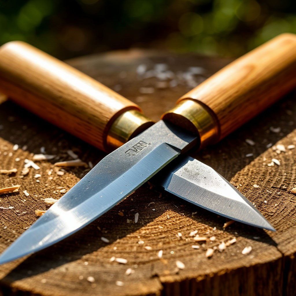 Технический Нюанс (Заточка)** Острота Под Липу: Магия Угла Заточки и Микроподкова! 🔪 Тупой инструмент – главный враг резчика по липе! Но даже острая стамеска может рвать волокна, если заточена неправильно. Раскрываем секреты идеальной кромки для мягкой древесины: 1. Угол – Основа Всего: Для липы нужны более острые углы, чем для твердых пород! Почему? Мягкое волокно не "подпирает" кромку, и тупой угол просто мнет его. * Косяки / Ножи: 20-25° – идеальный диапазон. Легко режет, долго держит заточку. * Стамески (прямые, отлогие): 25-27°. Достаточно прочно для большинства работ. * Клюкарзы / Уголки (для глубоких выемок): 27-30°. Нужна чуть большая прочность против излома. * *Важно:* Угол на *всей* длине кромки должен быть одинаковым! Используйте доводочные приспособления или тренируйте руку. 2. Микроподков (Micro-bevel) – Ваш Лучший Друг: Это очень узкая дополнительная фаска под чуть большим углом (на 1-3°) на самом краю основной фаски. * Зачем? Упрощает и ускоряет правку в