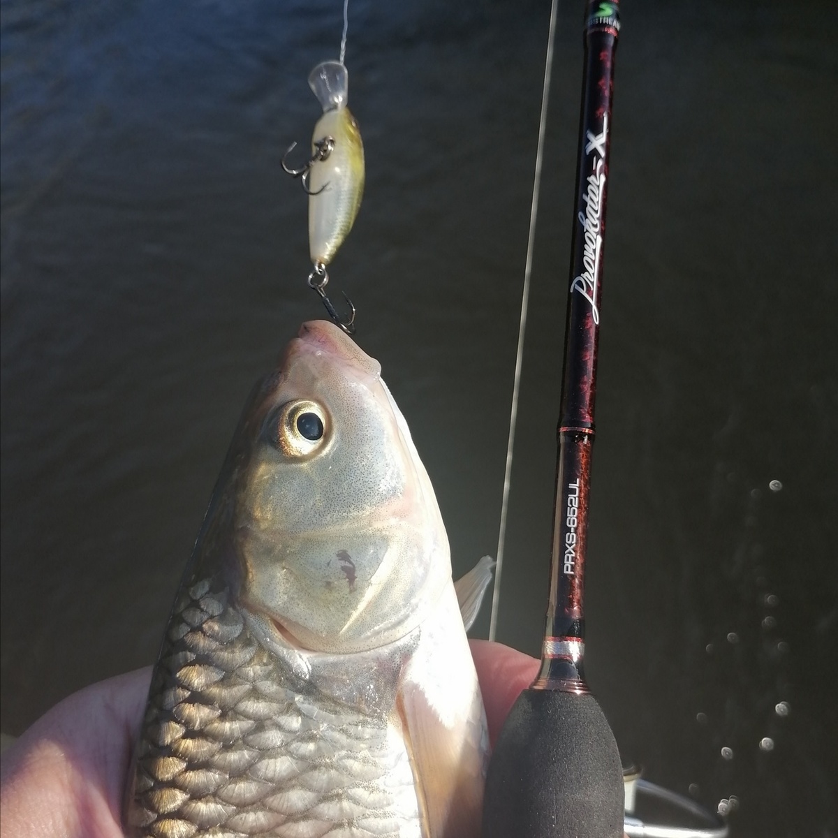 У «Провокатора 652UL» тест 0,6-5 грамма. Начал с «малыша» Chubby Minnow 35 (2,3 г) – как раз приманка для холодной воды. Заброс и контроль приманки хороший. Можно равномеркой, можно риппингом, можно подтвичивать, а можно и довольно агрессивно дёргать – всё удобно. Далее в воду полетел соотносимый по весу Abbey Мinnow SF (2,4 г) – с ним тоже всё в порядке.