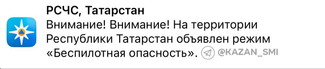 ☄️ Опасность атаки БПЛА в Татарстане