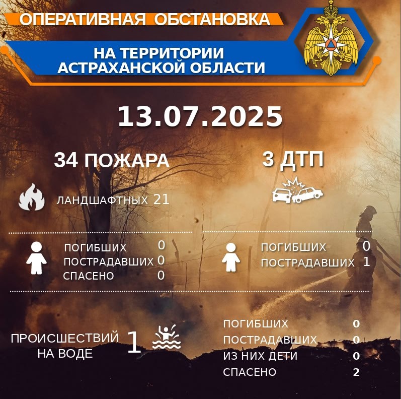🚨Оперативная обстановка на территории Астраханской области по состоянию на 00:00 13.07.2025