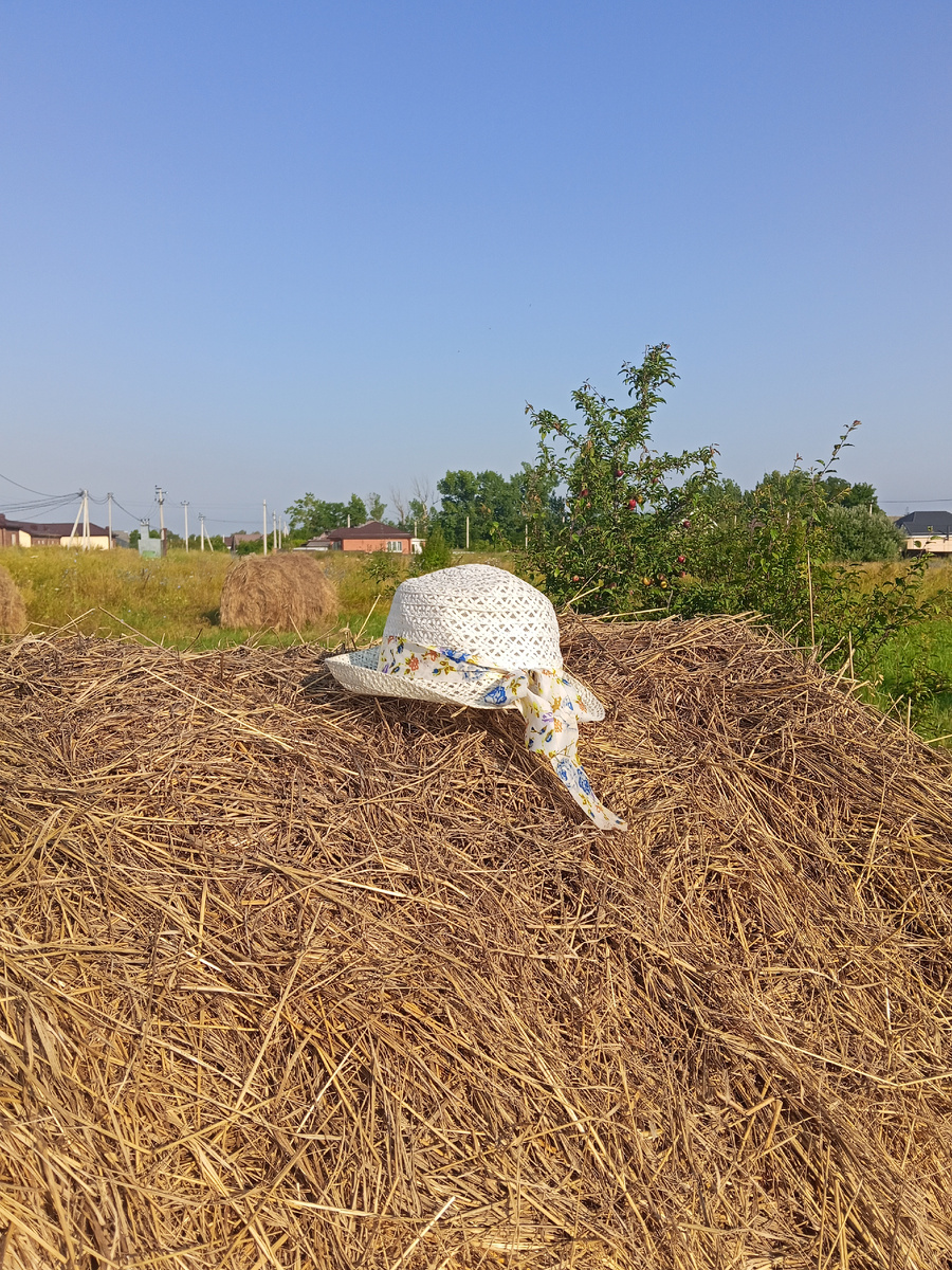 Сегодня решила написать немного о вчерашнем дне. Почему именно о нём? Наверное потому, что он, несмотря на сорокаградусную жару выдался таким лёгким, неспешным и приятным. Начну с того, что мы делали рано утром. У нас на выезде из города есть новый микрорайон. Именно там нашей семье, как многодетной, выпало получить участок. Естественно, я этот микрорайон облазила практически весь вдоль и поперёк 🤣 А там хоть магазинов пока и мало, но есть сквер, центр единоборств, обещают построить школу и детский сад. Вообще на месте этого микрорайона было поле. Да и сейчас там можно встретить фазанов и зайцев и много заросших участков. Туда видимо администрация с предупреждениями о штрафах за некошенную траву ещё не добралась. Микрорайон очень активно застраивают, строят даже многоэтажки. Каких только домов там нет! Это очень интересно, там погулять, но летом очень жарко, потому что мало деревьев-это минус. Так вот, в одном месте этого микрорайона мы как-то едя с мужем увидели стоги сена. А о фот