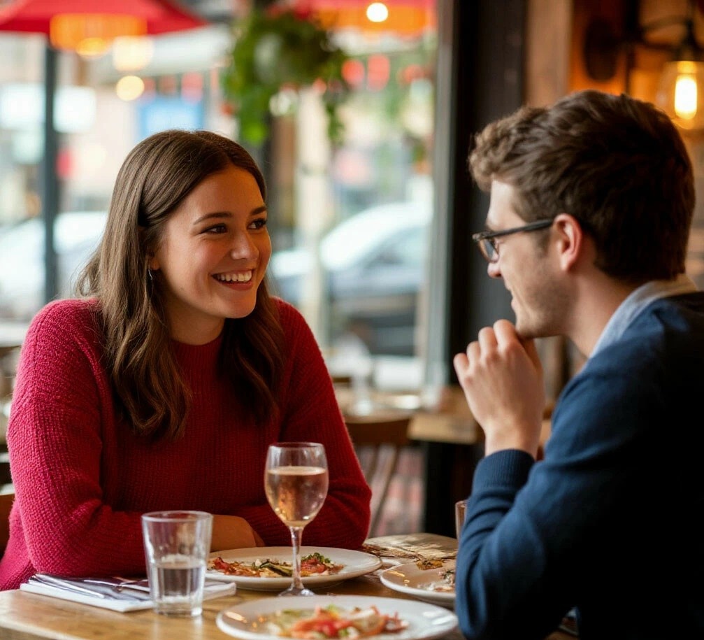 Первое свидание с Олей Дождь. Опять дождь. Казалось, в тот день сама вселенная решила проверить меня на прочность. Я стоял под козырьком кинотеатра, нервно поглядывая на часы: до назначенного времени оставалось пять минут, а я уже успел трижды передумать насчёт выбранного места. Может, надо было предложить уютное кафе? Или прогулку по набережной? И тут — *она*. Оля появилась из-за угла, раскрывая над собой ярко-жёлтый зонт, который больше напоминал солнце в этой серой промозглости. На ней были джинсы, слегка потрёпанные кеды и та самая кофта с оленями, про которую она потом скажет: *«Это мой талисман против неловких моментов»*. — Ты так напряжён, будто мы сейчас пойдём не на комедию, а на экзамен, — рассмеялась она, подходя ближе. Я хотел ответить что-то остроумное, но вместо этого пробормотал: — Просто… не ожидал, что ты согласишься. Оля прищурилась, потом вытащила из кармана две конфеты в золотистых обёртках. — Держи. Это для храбрости. А теперь пошли, а то мы