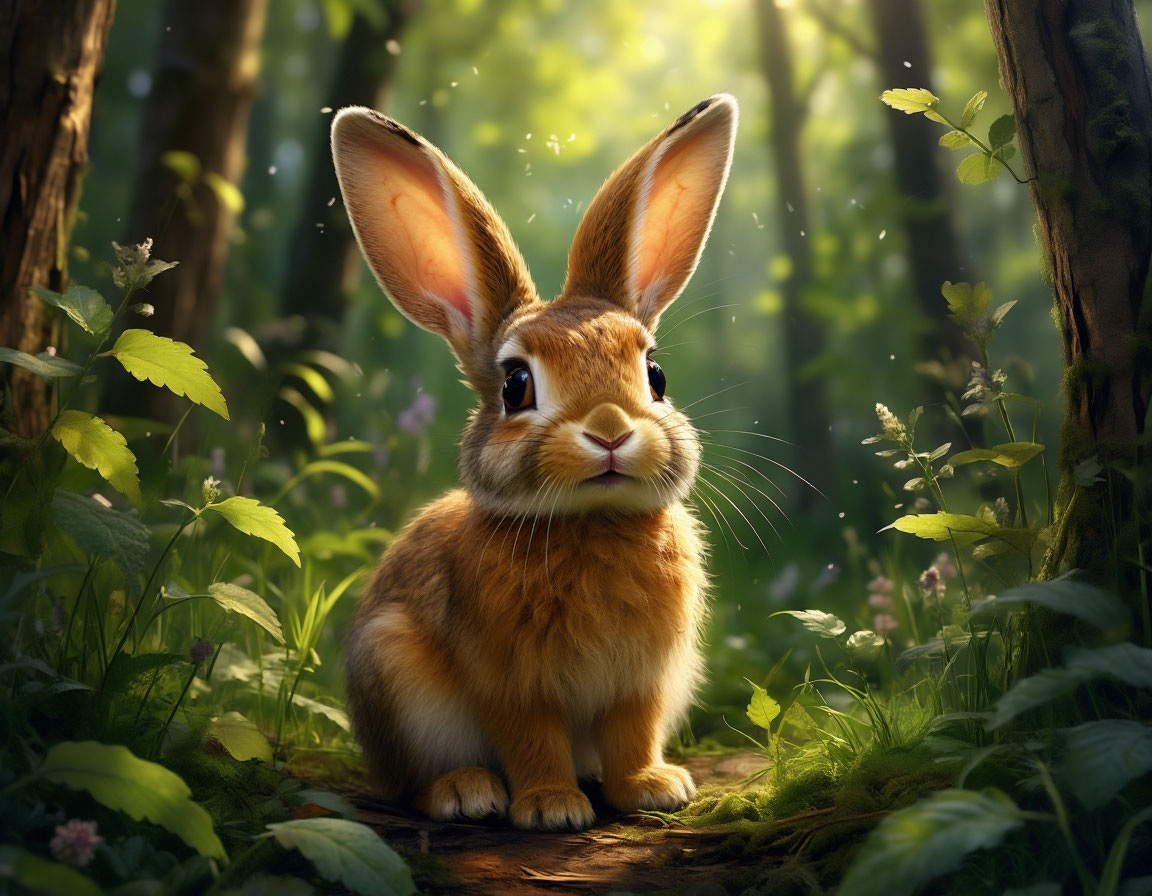 В густом зеленом лесу, спрятанном среди шелестящих листьев и прохладных теней, жил маленький зайчонок по имени Тихон.