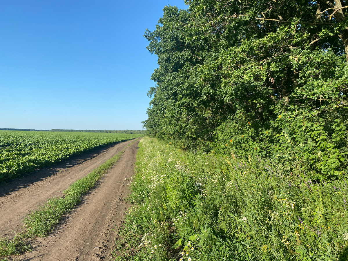 Всем привет, друзья! В такую жарищу заниматься металлокопом вообще нет никакого желания. Выезжаю лишь вечером, перед самым закатом, часика на два, больше ради того, чтобы немного побыть наедине с природой, отдохнуть после целого дня работы за компьютером и подвигаться. Хотя двигаться в такой зной — такое себе удовольствие. Да еще и ветровку приходится надевать — иначе мошка и злые слепни искусают всего. После таких прогулок становишься весь мокрый, как мышь. Приходится брать с собой запасную футболку, чтобы потом ее переодеть и не продуло в дороге. В прошлый раз во время такой прогулки я нашел несколько кустов с иргой и набрал с них немного ягод. Отвез их маме, она была очень довольна. А теперь решил съездить в другую посадку. Там тоже должна расти ирга. В детстве мы с папой туда ездили на велосипеде, и нарывали ее ведрами. Помню, мне было лет 5 или 6, папа делал на рамке велика отдельное сиденье, сажал меня туда, и так мы ехали в ту посадку за иргой. Теперь нужно ее найти и глав