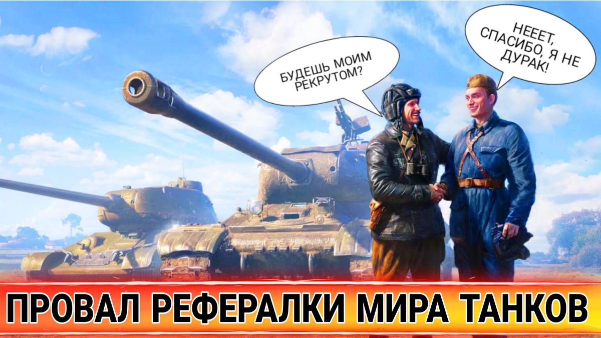- Старый игрок едва концы с концами сводит, чтобы пройти все активности, цепочки задач и прочую лабуду на своём аккаунте, а тут надо ещё поиграть пару часов с каким-то новичком, чтобы тот нафармил слёзки ( очки) реферальной программы. Да ну это бред. Кому оно надо то!? К примеру я: часок за два - три дня в мире танков и хорош. А то и это бывает даже много особенно летом. А если нездоровится....то вообще про танки и не вспоминаешь неделями. Старые игроки устали! Уже столько лет находится в безудержной гонке за чем-то в игре это я вам скажу та ещё работа. Поэтому попасть в очередную кабалу с рекрутом никто не хочет.