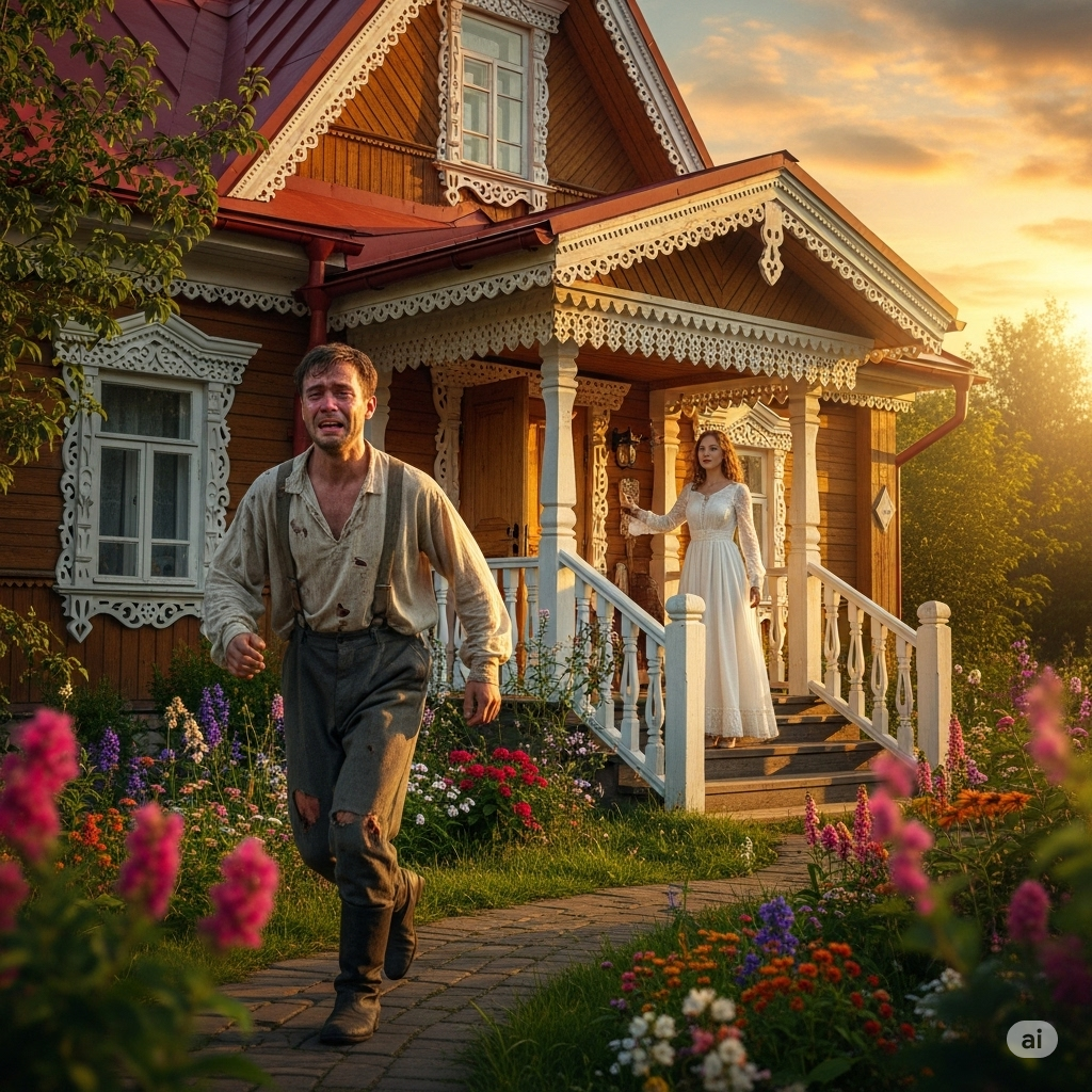 Он поднялся на ступени крыльца. Каждая доска была знакомой, родной. Он провёл рукой по резным перилам. Всё было на месте. Всё было так, как должно быть.