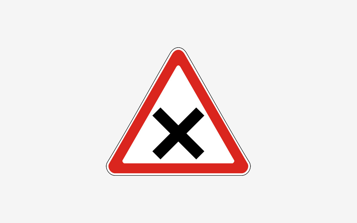 Знак 1.6. Пересечение равнозначных дорог Устанавливается в н. п. за 50-100 м, вне н. п. — за 150-300 м, знак может устанавливаться и на ином расстоянии, но при этом расстояние оговаривается таб.8.1.1 «Расстояние до объекта». Особенности: На таких перекрестках равнозначных дорог обгон запрещен всех видов транспорта всеми транспортными средствами.