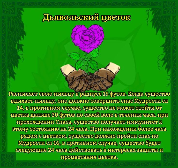 #предметы@dndpotustoronu Дьявольский цветок привлекает взор, Каждого манит необычный узор Как бы не манили прекрасные цветы, Больно жалят душу острые шипы. Смирившись с болью не уходят они, Не надеятся на лучшее время впереди. От цветка терерь люди не уйдут И всего себя ему отдадут.
