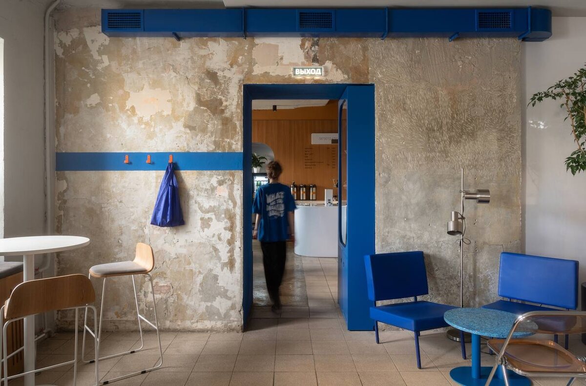 Кофейня Yankee Sierra в усадьбе купцов Ижболдиных Екатеринбурга первой половины XIX века от Завод11 / Ирина Потапова Авторы проекта открыли несколько культурных слоев в помещении: оставив советскую штукатурку во втором зале, открыв кирпич 19 века на стене окон в уборной. Разнообразие цвета в интерьере освежило исторический контекст, получился особый микс старого с новым в фактурах, винтажных предметах и материалах. Интерьер создавался опираясь на фирменный стиль кофейной обжарки, в основе которого аэростиль и самолетная концепция. Команда транслирует вкусовые эмоции, сравнивая их с первым полетом и путешествием. В интерьере это отразилось через обтекаемые формы в пространстве и мебели, материалах пластика и металла. Яркие же акценты использовались для того, чтобы передать характер молодой команды. После знакомства с заказчицей, Олесей Шпульвильд, стало понятно, что в интерьере будет обязательно присутствовать яркий винтаж, разные модели (свет и стулья культовых дизайнеров 60х годов),