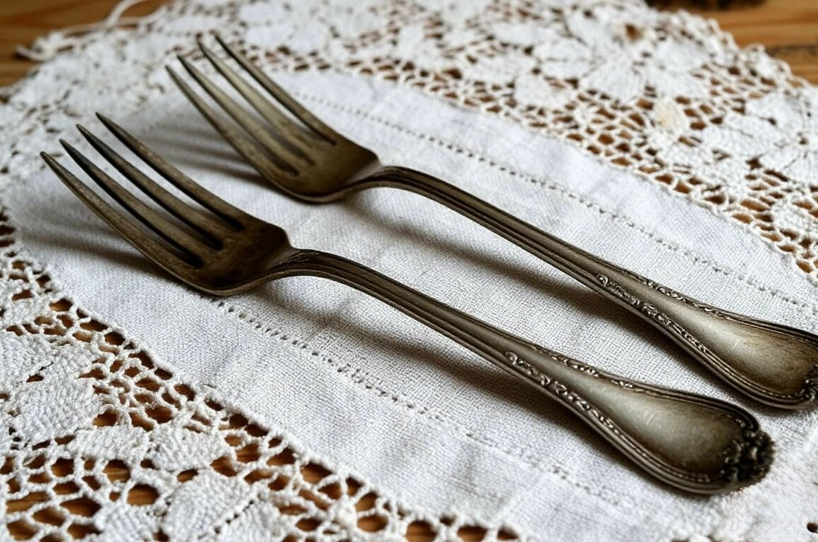 Сижу тут на днях в гостях у тёти. Заехал поздно вечером после дачи, Сели перекусить. Еда простецкая - пельмени. В руки попадает мне вилка. Я кручу её в руке, и тут же меня накрывает волна воспоминаний... Вот пятый этаж панельного дома. Я - маленький, прижимаюсь к стене. Она тёплая, поскольку батарея внутри. Кухня, где я сижу, очень маленькая. Холодильник подвешен к потолку. Это квартира дедушки и бабушки. Когда деду дали эту квартиру в строящемся микрорайоне Юбилейный, никто не сетовал на тесноту. С тех пор минуло больше 30 лет, а в моей руке сейчас та же вилка, что и в детстве. - Ещё маленький был, думал, какая необычная форма, - говорю я тёте. - Это немецкие вилки, - слышу в ответ. - Они серебряные. С бОльшим интересом начинаю разглядывать вилку. Серебро от времени потемнело, что добавило столовому прибору благородства. - Дедушкин брат дядя Коля из Германии привёз в 45м, - продолжила тётя. - Из Берлина. Офицерское звание у дяди Коли было не высокое. Хватило вот на такой трофей. Пр