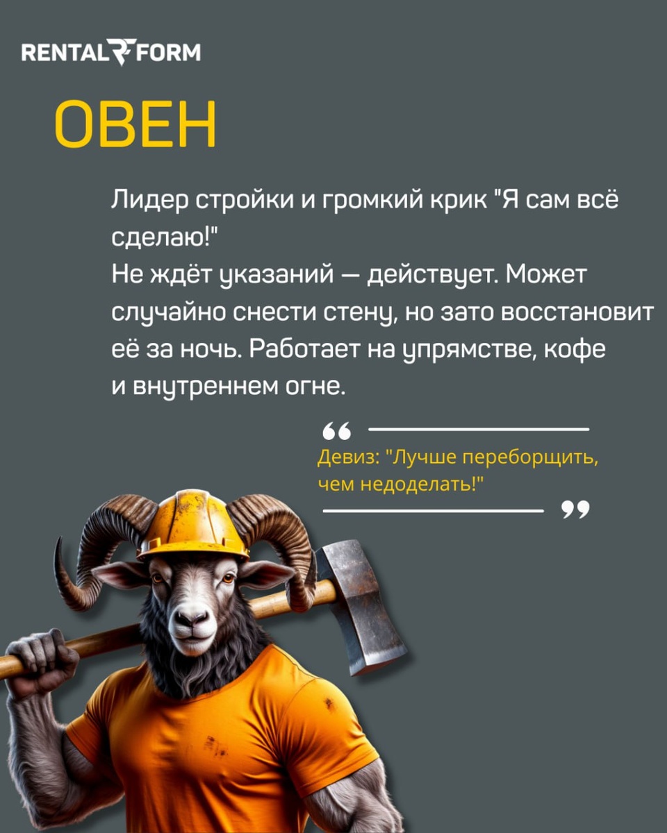 Астрология для строителей — знаки, которые держат стройку в тонусе! ч.1 Овен рвётся в бой с боевым кличем «Я всё сделаю сам!», Лев блистает на стройке, как настоящий король фасада, а Рак заботливо следит, чтобы в доме было тепло и уютно. Без них стройка — как дом без фундамента: шумно, весело, но ненадёжно!