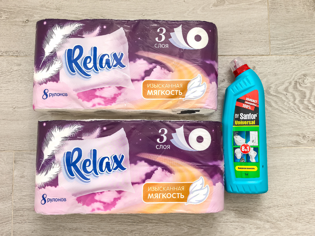 Накануне ездили в город и пока мои мужчины занимались своими делами, я прошлась по магазинам. Зашла в «Светофор» и «Фикс-прайс» купила необходимое и не очень нужное. Всё как всегда у меня. Люблю этот магазин-склад. Многое там дешевле чем везде. Но, конечно, я не покупаю всё бездумно. Беру проверенные бренды, ну и читаю состав обязательно. Итак, начну с бытовой химии. Взяла две упаковки туалетной бумаги и Санфор универсальный. Бумага у нас стоит 117 рублей за 8 рулонов. Мягкая, не очень тонкая, нормальная, в общем. Считаю, что это дёшево. Ну и санитарный гель для уборки за 89 рублей ничем не отличается от того Sanfor, что я заказывала на озоне за 139 рублей. Далее всякое съедобное: лаваш, солёные крендельки, мармелад обычный и жевательный, печенье, плавленный сыр Hochland, приправа, лапша быстрого приготовления и очищенные томаты в собственном соку. Лаваш отличный этот, кстати. Всегда покупаю, когда вижу. Шаверма с ним получается очень вкусная, а ещё из этого лаваша я делаю рулетики
