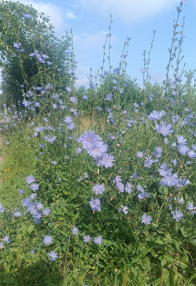 Снова расцвел цикорий. Эти голубые красивые цветочки мне очень нравятся, а ещё я люблю пить напиток цикорий, он очень полезен. Делают его из корня этого растения. Я пью цикорий вместо кофе. А этот ролик я снимала год назад. Тогда цикорий на две недели раньше зацвел, чем в этом году. А как вы относитесь к цикорию?