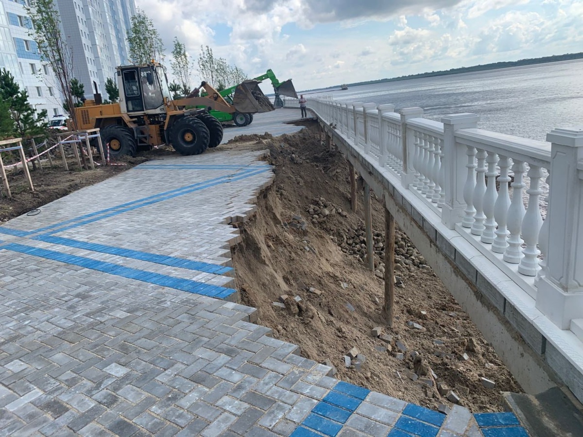 😱 Набережная обвалилась возле нового ЖК в Сургуте