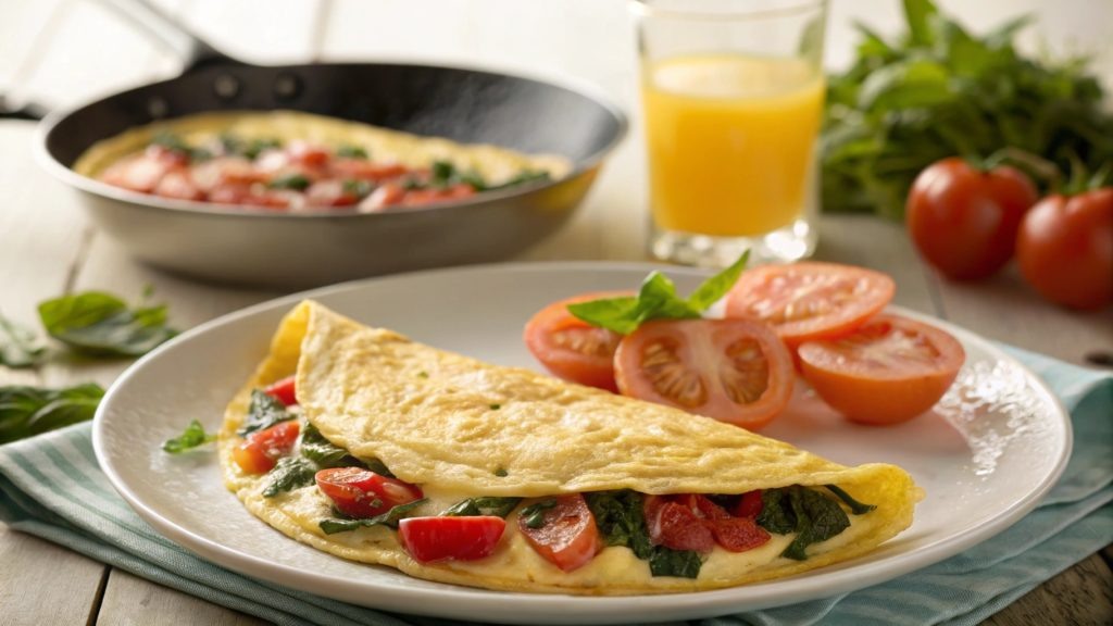 - Фермерский омлет: Включите мелко нарезанный бекон, обжаренный до хрусткости, немного тертого картофеля и зеленый лук для деревенского, сытного варианта.