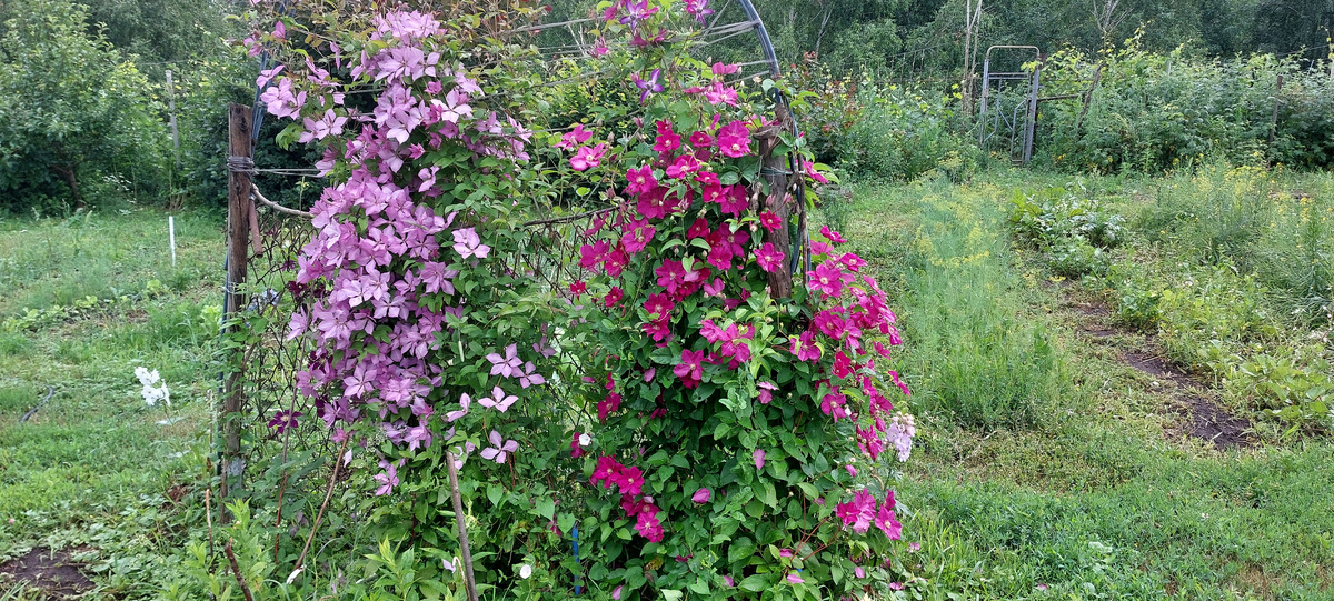 Всем добрый день! Уже вечер скоро, а я еще не до конца проснулась, и, не стыдясь, пропускаю дни публикаций. Ну вот просто так макушка лета на многих влияет - не работается. То перед дождем (которые зачастили), когда все бегом (по возможности) на даче, то ливень там рекой пережидаешь и забиваешься под покрывальце поспать, то после "дачного отдыха" потом в городе отдыхаешь по полдня непонятно в "каком сплине". Почти депрессия, однако... А тут еще заехали на нашем Змеиногорском тракте в Зеленый дворик и я увидела цены на свои клематисы. О, боги! С тех пор, как заказывала их из Омска, цена поднялась в четыре раза!! Вот на первом фото справа красный клематис РОБЕРТ МАРКХЕЙМ, так он стоит у них 1.500 рублей!!! Даже на Динамо цены на клематисы были ниже. Я там весной покупала СКАЗКУ всего за 350. И КРАСНЫЙ КАРДИНАЛ, он ниже на фото, тоже по полторы тысячи, хотя цветов у него значительно меньше, чем у того же Роберта. В общем, я поздно нашла информацию о том, что клематисы можно выращива