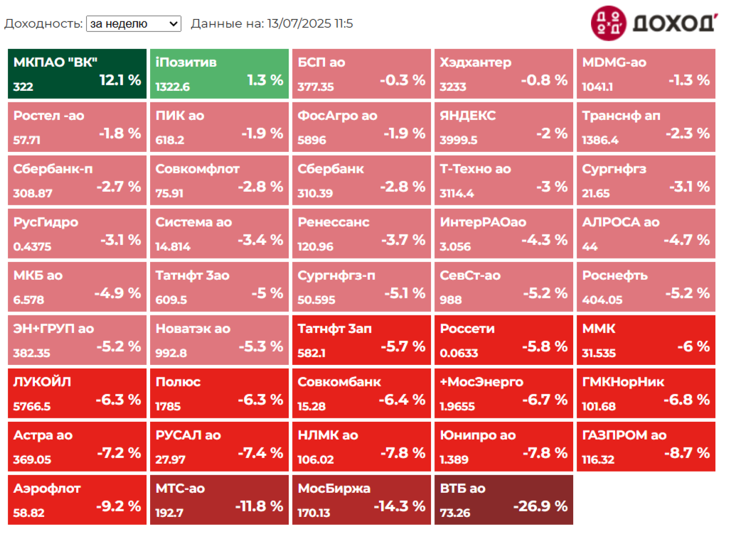 Итоги недели на фондовом рынке с 7 по 11 июля 2025 года