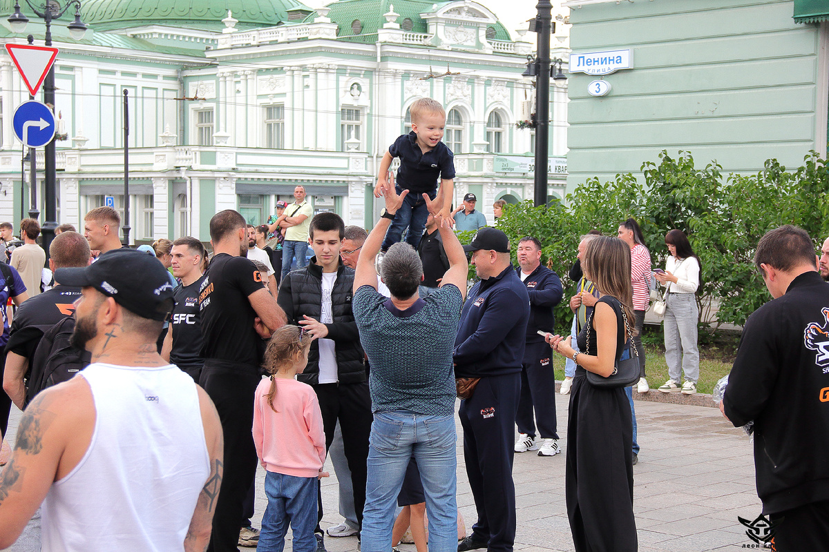 11 июля 2025г. На Любинском Пешеходном ближе к 19-00 около Драмтеатра, наблюдалось скопление людей. У подавляющего числа пришедших на футболках читался логотип SFC. Причиной тому было запланированное на 20-00 медийное взвешивание и битва взглядов бойцов-участников SFC-11. Здесь можно было заметить омского бойца Андрея Корешкова. И нашего, омского «Илью Муромца» Александра Подмарева. Главный омский боец Александр Шлеменко ( ШТОРМ) подъехал, но не выходил из машины. Был сосредоточен. Оно и понятно, вся ответственность за происходящее мероприятие лежит на нем. Нужно все учесть, продумать. Более того, он и сам будет биться с испанцем. Его соперник, испанец Гильерме «ВОИН» Кадена, еще не в полной мере осознал , с кем ему придется драться. Ходил улыбался, показывал язык, позировал для фотографов. Человек он заслуженный, является чемпионом Европы по бразильскому джиу-джитсу. Наконец и Александр Павлович решил появиться перед собравшимися. Тут то его и атаковали корреспонденты и фотографы. Не