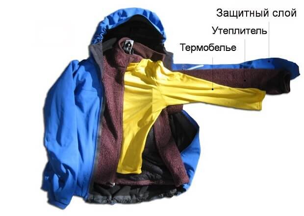 От штанов, переходим к верху. Это конечно не вяжется с тем, чему нас учили с детства. Но все должно быть синтетическое! Хлопковые вещи можно взять для того, чтобы в них спать . Когда мы потеем при ходьбе с тяжелым рюкзаком ,синтетическая футболка не впитывает влагу, она отводит ее. Хлопковая футболка впитывает в себя очень много влаги, доставляет массу неприятных ощущений и высушить ее после очень непросто. Если на улице прохладно то сверху футболки одеваем флисовую кофту. Флис ещё лучше отводит влагу от тела и очень хорошо греет. Он состоит из вертикально поставленных друг к другу волокон, которые между собой сшиваются нитью по середине. Чем толще флисовая кофта, тем длиннее эти волокна. Они как раз помимо отвода влаги, создают воздушную подушку. Так что только флис, никакого хлопка! Сверху флиса одеваем то, что защищает от ветра. Это должна быть тонкая, но плотная ветровка. Она может быть мембранной,или нет. Уже самолично подбираем, что удобнее. Чем плотнее, тем лучше держится тепл
