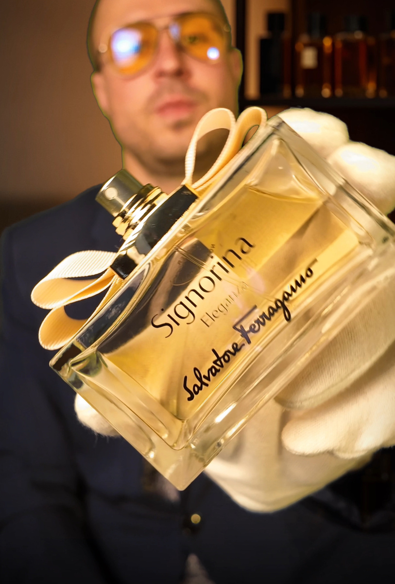 Запах из детства, который бьет в сердце. Представьте: вечер, бокал вина, смех... Моя подруга неожиданно замирает, принюхивается к моему запястью — и вдруг у нее наворачиваются слезы. «Это же... бабушкины духи! Точь-в-точь!» Размазанная тушь, неловкое молчание... А виновница — Signorina Eleganza от Salvatore Ferragamo. И знаете что? Она не одна такая. Выпущен: 2014 год. Автор: Гений парфюмерии Sophie Labbe . Пирамида: Верх: Сочная груша + горьковатый грейпфрут. Не кислый лимон, а именно благородная горечь, как у дорогого шампанского. Сердце: Османтус (представьте абрикос, залитый медом) + миндальная пудра. Не марципан, а легкая, почти "пыльная" нежность. База: Пачули (не грязь, а шелк!) + белая кожа. Шипровая основа, но без тяжести . Фишка аромата: Его создали как «взрослую» версию игривой Signorina 2012 года. Элегантность здесь — не скучная, а с капризной ноткой. Будто строгая юбка-карандаш... но с дерзким разрезом . 1. Триггер памяти: Османтус + миндаль — редкий дуэт. У многих