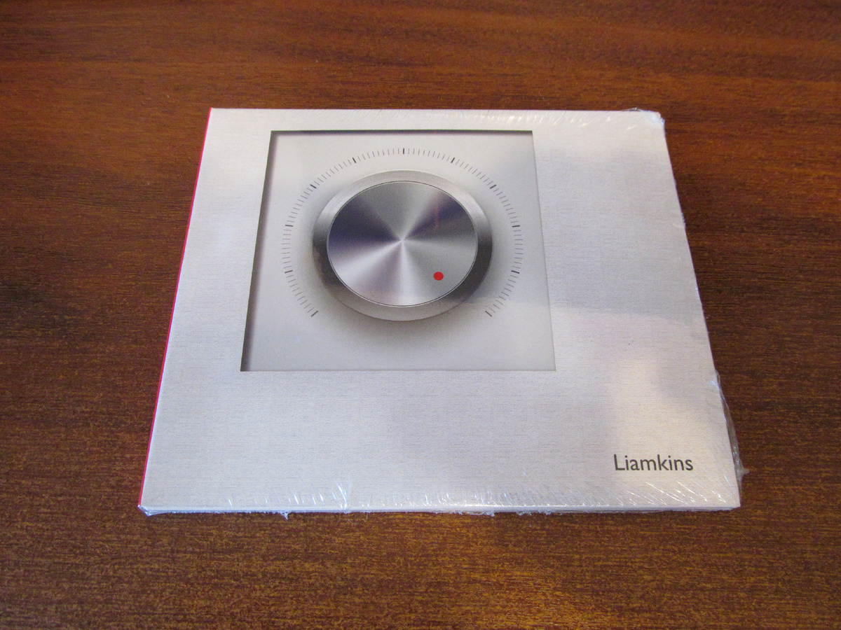 На лицевой стороне упаковки (выполнена из картона) название проекта Liamkins и изображение регулятора громкости, который выкручен на максимум.