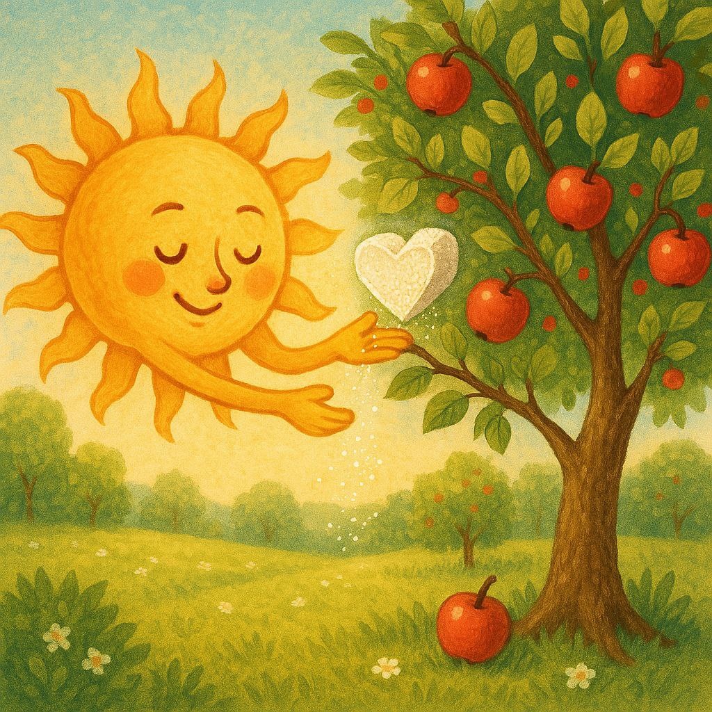 Садоводы ☀️ почему любимые фрукты сладкие? Солнышко ☀️ вот ответ. Солнце, это источник света, и настоящий дирижёр вкуса фруктов. Его влияние на сладость плодов, это сложный симфонический процесс, в котором участвуют биохимия, климат, агротехника и даже генетика растений. Как солнце формирует сладость фруктов? Фотосинтез — основа сладости. Солнечные лучи активируют фотосинтез. Это процесс, при котором листья превращают углекислый газ и воду в глюкозу и другие сахара. Эти сахара затем транспортируются в плоды, где накапливаются, придавая им сладкий вкус. Чем больше света, тем интенсивнее фотосинтез, и тем выше сахаристость. Созревание под солнцем В период созревания солнечный свет особенно важен. Он ускоряет метаболизм растения, способствует накоплению сухих веществ и сахаров. Плоды, дозревающие на солнце, становятся не только слаще, но и плотнее, ароматнее, с яркой окраской и это особенно заметно у персиков, винограда, клубники и яблок. Солнечные участки ☀️ VS тень На тенистых грядк