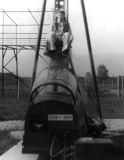 Но это ерунда, есть на ПДС ещё и «серьёзный» тренажёр НКТЛ-29/39, его надо «проходить» раз в год. А это подброс уже настоящий, от пиропатрона с перегрузкой 8 или 12 единиц. От этого тренажёра лётчики обычно «бегали», как от парашютных прыжков. Обычно начальники ПДС особенно и не настаивали, статистика у этого тренажёра была не очень, могли быть и травмы. Начальник ПДС обычно ограничивался лётчиками-лейтенантами. А этот товарищ Бирюков требовал, чтобы все лётчики проходили через этот тренажёр, даже хотел привлечь и наших командиров. Вот тут ему и объяснили, что он «не прав». Потихоньку он и поостыл. Тренаж этот раз в год, как и положено, лётчики проходили, но ограничивались подбросом пару лётчиков–добровольцев для наглядности.