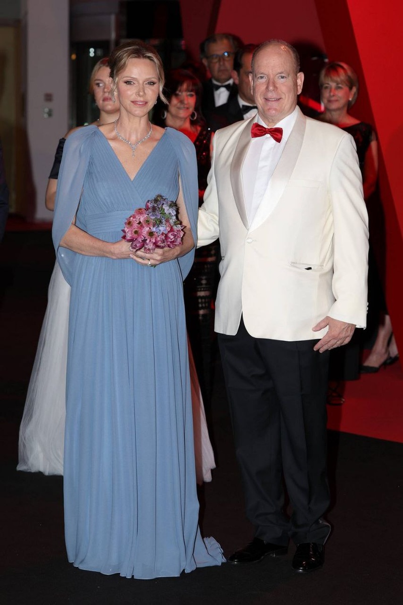 🇲🇨 Альбер и Шарлен вчера вечером посетили ежегодный бал Красного Креста 💙 как вам образ княгини?