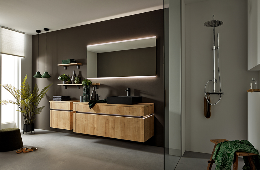 Nolte – это всегда выбор номер один, не только для кухонь и гостиных. Новейший представитель семейства – Nolte SPA, произведенный в первоклассном качестве и с превосходным дизайном компанией Nolte Küchen, самым популярным немецким кухонным брендом. Оцените нюансы от привлекательного декора внутри шкафов до MatrixArt –ванной комнаты без ручек. Посмотрите дизайн ванной комнаты, подробные детали. Эта концепция ванной комнаты основана на сочетании деревенского деревянного декора MANHATTAN в цвете «Дуб шале» с черными элементами, такими как раковина и смеситель. Подсвеченный утопленный профиль ручки MatrixArt – это тонкий, но четкий акцент на функциональном и современном дизайне. Природные элементы подчеркивают современный дизайн ванной комнаты. В результате получается ванная комната, в которой хочется задержаться подольше. Сочетание фасада NOVA LACK в глянцевом белом цвете со светлым декором из натурального сучковатого дуба превратит любую ванную комнату в уютное и комфортное пространство.