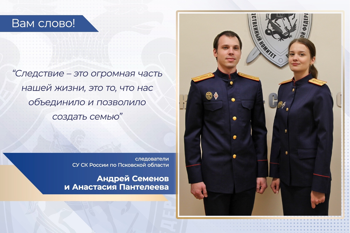 В проекте «Вам слово!» принимают участие следователи СУ СК России по Псковской области - супруги Анастасия Пантелеева и Андрей Семенов