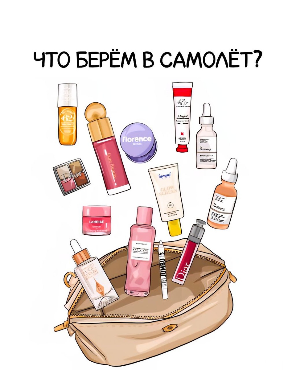 Перелёты и кожа: что взять в ручную кладь, чтобы выйти из самолёта нормальной, а не сушёной курагой Если вы хоть раз летали, то знаете, кожа после рейса будто постарела лет на пять: сухость и стянутость, или наоборот жирный блеск и ощущение «всё не то». А всё потому, что влажность в салоне всего 10–20%, и организм теряет влагу со скоростью света. Но если подойти к делу грамотно, можно не просто выжить, а выйти из самолёта сияющей Вот что реально стоит взять с собой в ручную кладь, чтобы пережить полёт с комфортом: 1. Увлажняющий крем • Ищите формулу с гиалуронкой, скваланом, глицерином, церамидами • Нанесите толстым слоем перед взлётом, это создаст защитную плёнку и удержит влагу • Лучше брать крем чуть плотнее, чем обычно (например, ночной или SOS-бальзам) 2. Питательный бальзам для губ • Воздух в салоне высушивает губы моментально • Отлично работают средства с восками, ланолином, маслами ши и жожоба • Можно нанести и на кутикулу или на сухие участки кожи, тоже шикарно поможет 3.