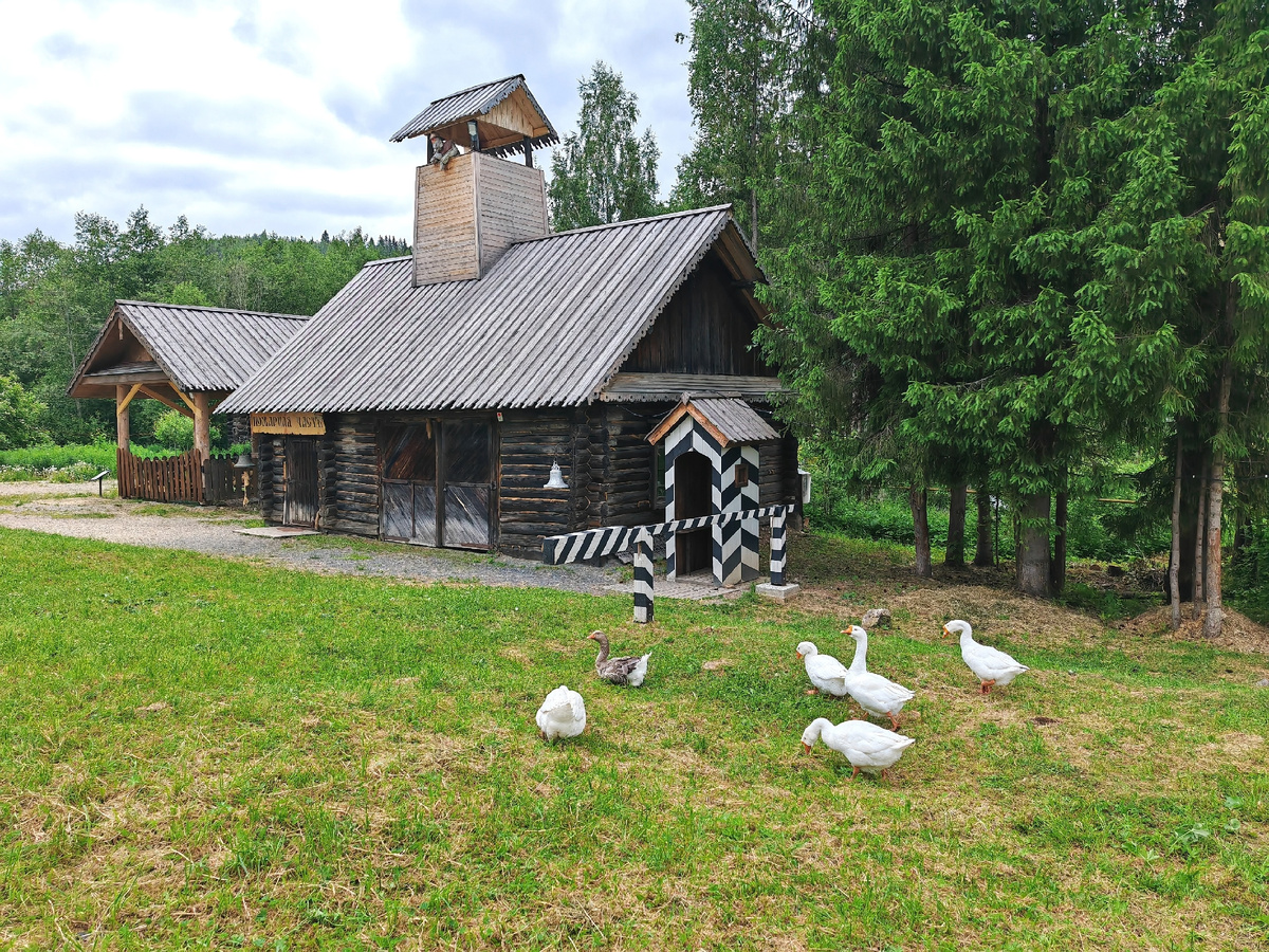 На фото я с макетом велосипеда Артамонова. По преданию, местный житель Ефим Артамонов, который родился в Пожве в 1776 году в семье крепостного плотника и специалиста по строительству, изобрёл и смастерил первый велосипед в России. Ефим помогал отцу строить барки для сплава по реке Чусовой. Он доставлял металлический крепёж из Нижнетагильского завода Демидовых.