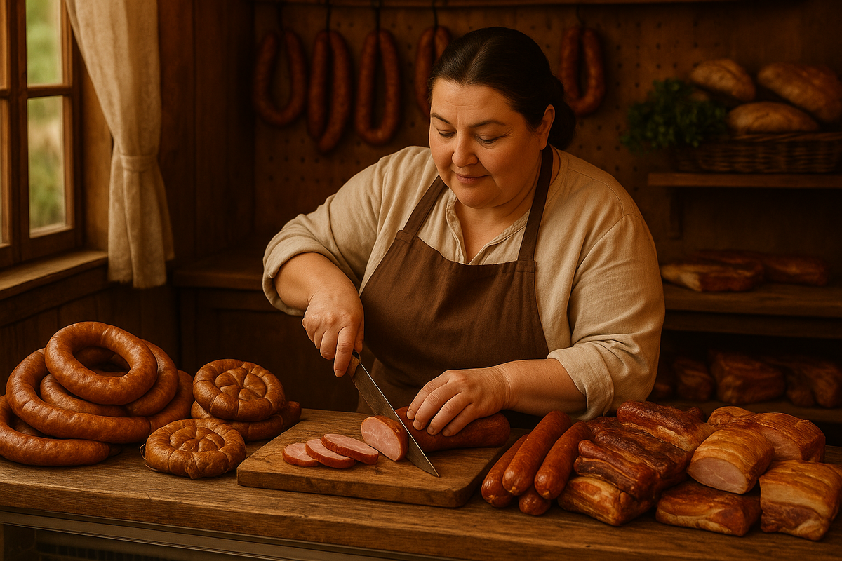 Когда вы в последний раз чувствовали запах колбасы — не пластика, не упаковки, не ароматизатора, а настоящего мяса? Вот берёте вы палку колбасы в магазине, открываете — и… тишина. Вкус есть? Как будто бы есть. Но ощущения — нет. Души — нет. Просто “колбаса”, которая как будто стесняется, что она — колбаса. Мы это поняли давно. Когда дед принёс домой палку “новой” колбасы и сказал: — Раньше пахла сени заполняла. А теперь — будто тряпку жевать. Он всегда был прямым человеком. И знал толк в мясе. Так мы и пришли к тому, чтобы делать своё. По-старому. По-настоящему. Колбаса перестала быть едой. Она стала бизнесом. Граммами. Партией. Маркетингом. Таблицей БЖУ. А мы с вами — стали потребителями, а не едоками. Вспомните, как раньше пахло мясо, когда его коптили на улице. Как шипел жир, как чеснок царапал нос, как хлебом тянуло из печки. Это была еда, в которую клали жизнь, а не только соль и нитрит. Мы не на заводе. Мы не гонимся за “массовым производством”. У нас нет конвейера. Есть руки.
