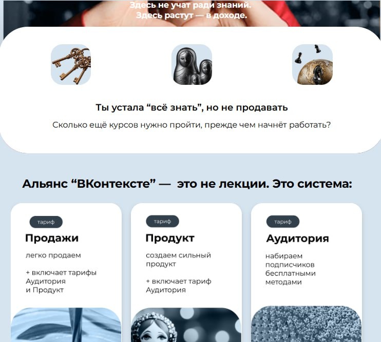Почему ты знаешь “всё”, но не продаёшь? Давайте по-честному: Это точно Не потому что ты ленишься. И не потому что “не хватает уверенности”. А потому что ты всё ещё ДЕЛАЕШЬ ЭТО БЕЗ❌ системы.❌ Сначала ты учишься СОБРАТЬ подписчиков.... идешь к этой заветной 1000...... Потом пытаешься продавать текстом.......ии.... Потом уходишь в “самоценность”, потом снова ПОКУПАЕШЬ новый курс. В Альянсе ЛИДЕРОВ “ВКонтексте” мы обрубаем это колесо сансары/ Отзывы здесь https://t.me/tpolhovskaya_otzyv/438 Строим СЛЕДУЮЩУЮ СИСТЕМУ , работая сразу в четырех сферах подписчики → продукт → продажи → масштаб. Не умом. ❌ Структурой.✅ Хочешь выйти из своих кругов “ещё не готов” и вытащить из этого своих клиентов? Тогда прямо сейчас: переходи по ссылке АЛЬЯНС ЛИДЕРОВ "Вконтексте" , и забери свой бонус: 50 монет ,за сегодня и прокрути барабан . Может именно тебе сегодня прилетит удача , или самостоятельно прямо сейчас решишь СТАТЬ ПОЧЕТНЫМ УЧАСТНИКОМ АЛЬЯНСА ЛИДЕРОВ "Вконтексте" - это уже признан