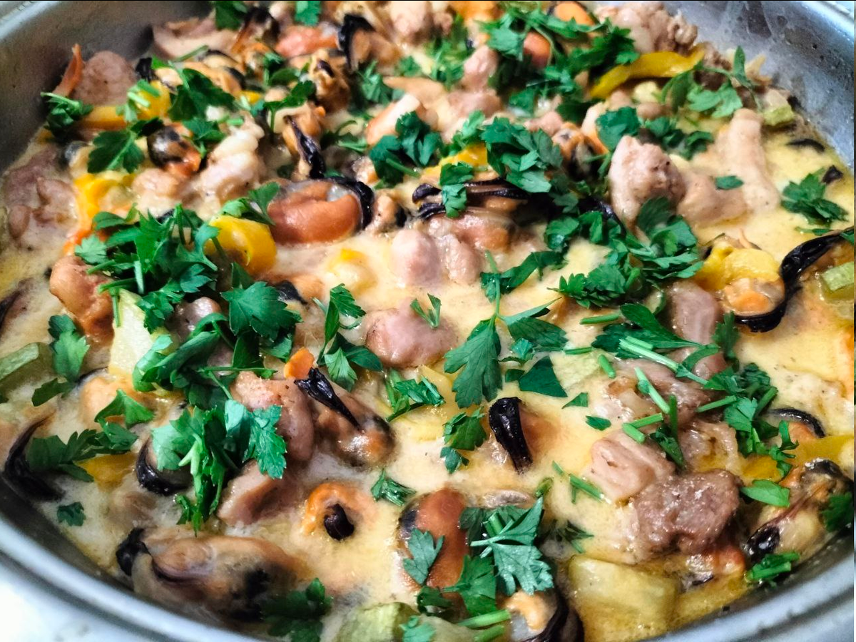Мидии на скоровороде в сливках с овощами - вкуснейшее угощение за 15 минут