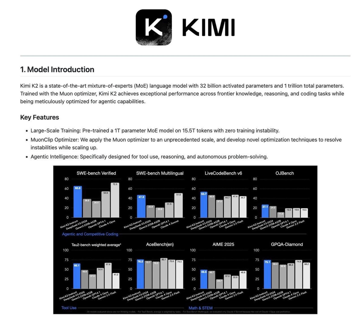 Китайская команда представила топовую open-source модель Kimi K2 с 1 триллионом параметров