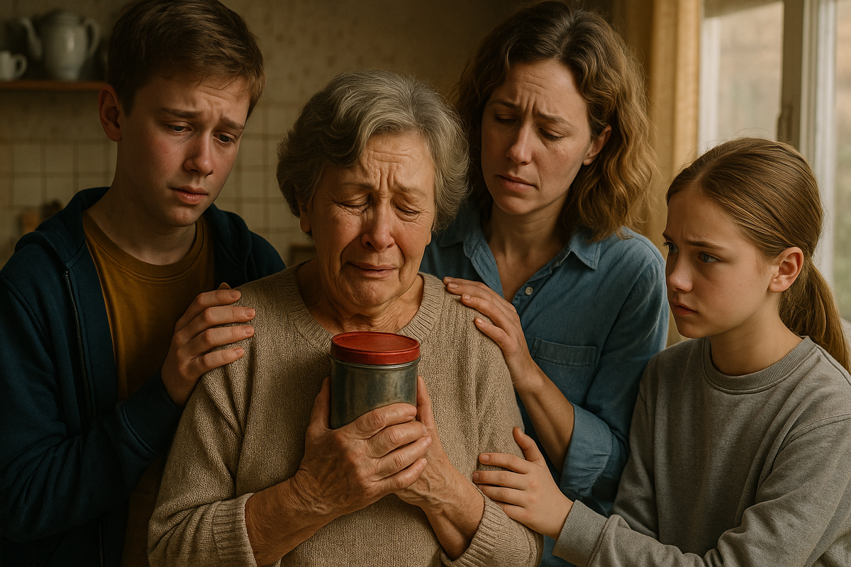 Я опустилась на стул и прижала баночку к груди. Внутри неё что-то звонко перекатилось —, как будто и правда весь дом вздохнул. Дети переглянулись, потупились, будто тоже тянут за собой что-то тяжёлое, но не сказанное.