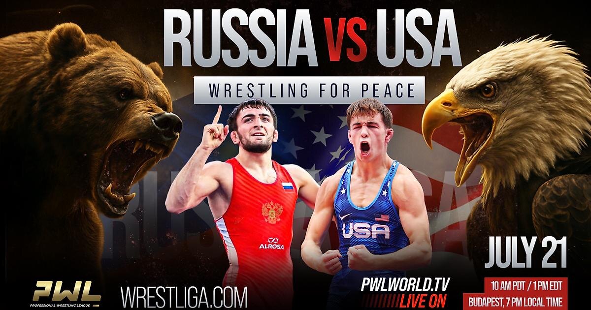 Встреча состоится в Будапеште в рамках Профессиональной Борцовской Лиги (PWL 9). Матч в Венгрии станет первым в серии противостояния российских и американских борцов. Впереди будет еще две встречи – в России и США. Участники До 57 кг Муса Мехтиханов (Россия) – Люк Лилледаль (США) До 61 кг Муслим Мехтиханов (Россия) – Сет Гросс (США) До 65 кг Абасгаджи Магомедов (Россия) – Сиджей Компосито (США) До 70 кг Сайын Казырык (Россия) – Брюс Андониан (США) До 74 кг Магома Дибиргаджиев (Россия) – Джозеф Блейз (США) До 79 кг Мохьмад Насирхаев (Россия) – Дижей Хамити (США) До 86 кг Аманула Расулов (Россия) – Маркус Коулмен (США) До 92 кг Аманула Гаджимагомедов (Россия) – Майк Маккиавелло (США) До 97 кг Константин Пшеничников (Россия) – Джей Айелло (США) До 125 кг Зелимхан Хизриев (Россия) – Трент Хилджер (США)