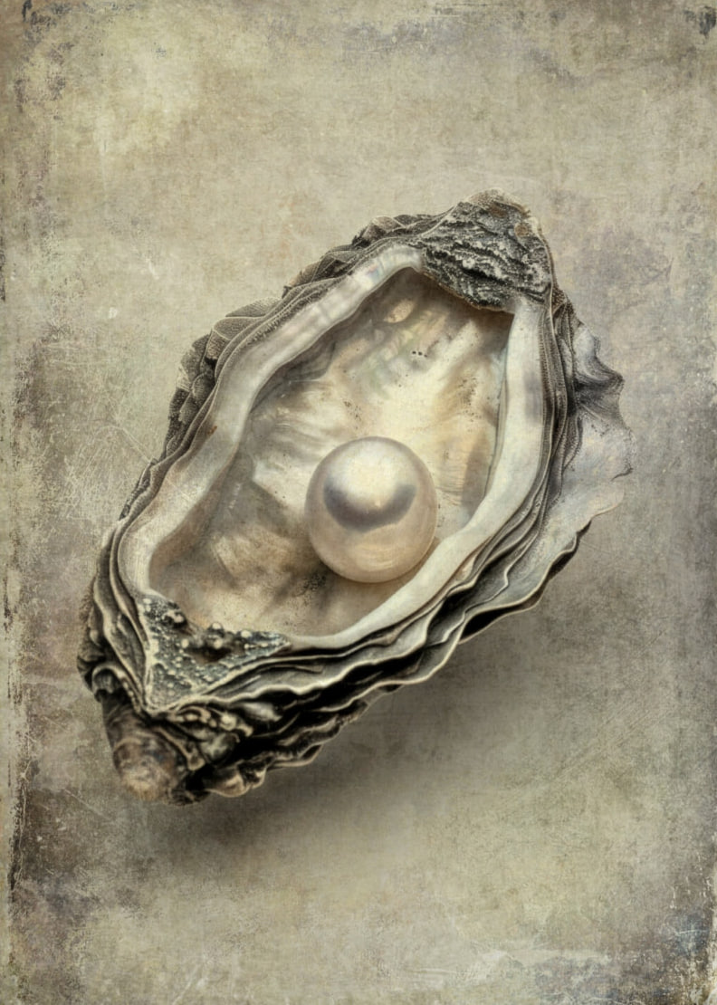 На полотне изображена раскрытая ракушка с жемчужиной в центре — объект, вызывающий ощущение тишины и времени. Автор акцентирует внимание на фактуре: шероховатые, многослойные створки ракушки контрастируют с гладкой, почти зеркальной поверхностью жемчужины. Фон приглушённый, нейтральный, с намёком на изношенность — как будто поверхность холста пропитана временем. Цветовая гамма выдержана в приглушённых, землистых тонах: серо-бежевые, охристые и пепельные оттенки придают изображению эффект старины. Свет мягкий, рассеянный, создаёт лёгкие тени и подчёркивает рельеф. Вся композиция минималистична, но в то же время предельно выразительна. Стили: Натюрморт, фотореализм, ванитас, минимализм, современное искусство, неоклассика. Автор работы: Светлана Алейникова, Азов, Ростовская область, Россия Картина «Старинная ракушка» Здесь вы можете наслаждаться картинами современных цифровых художников, которых нет в масс-маркете, и которые можно купить на холсте или бумаге 🤍